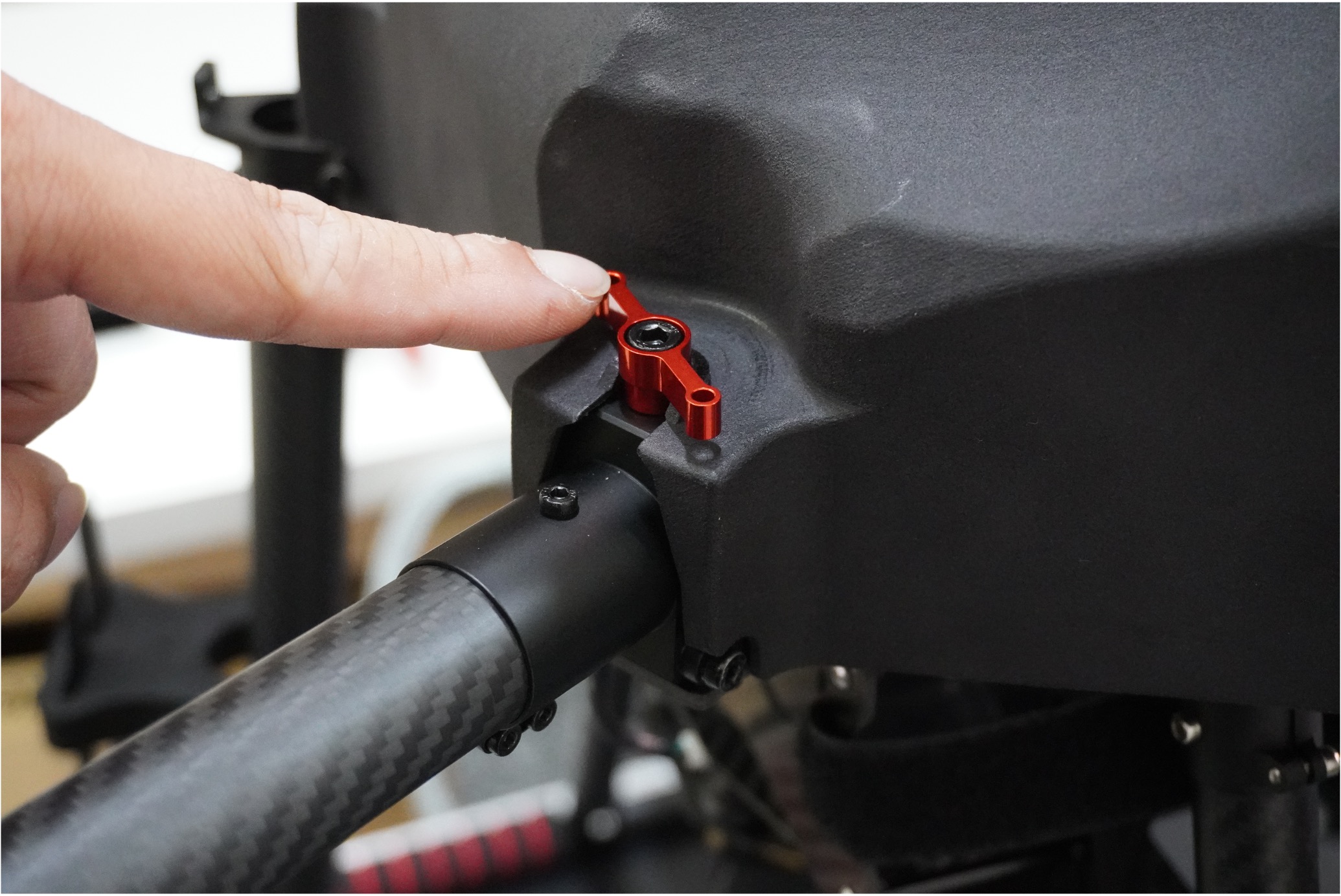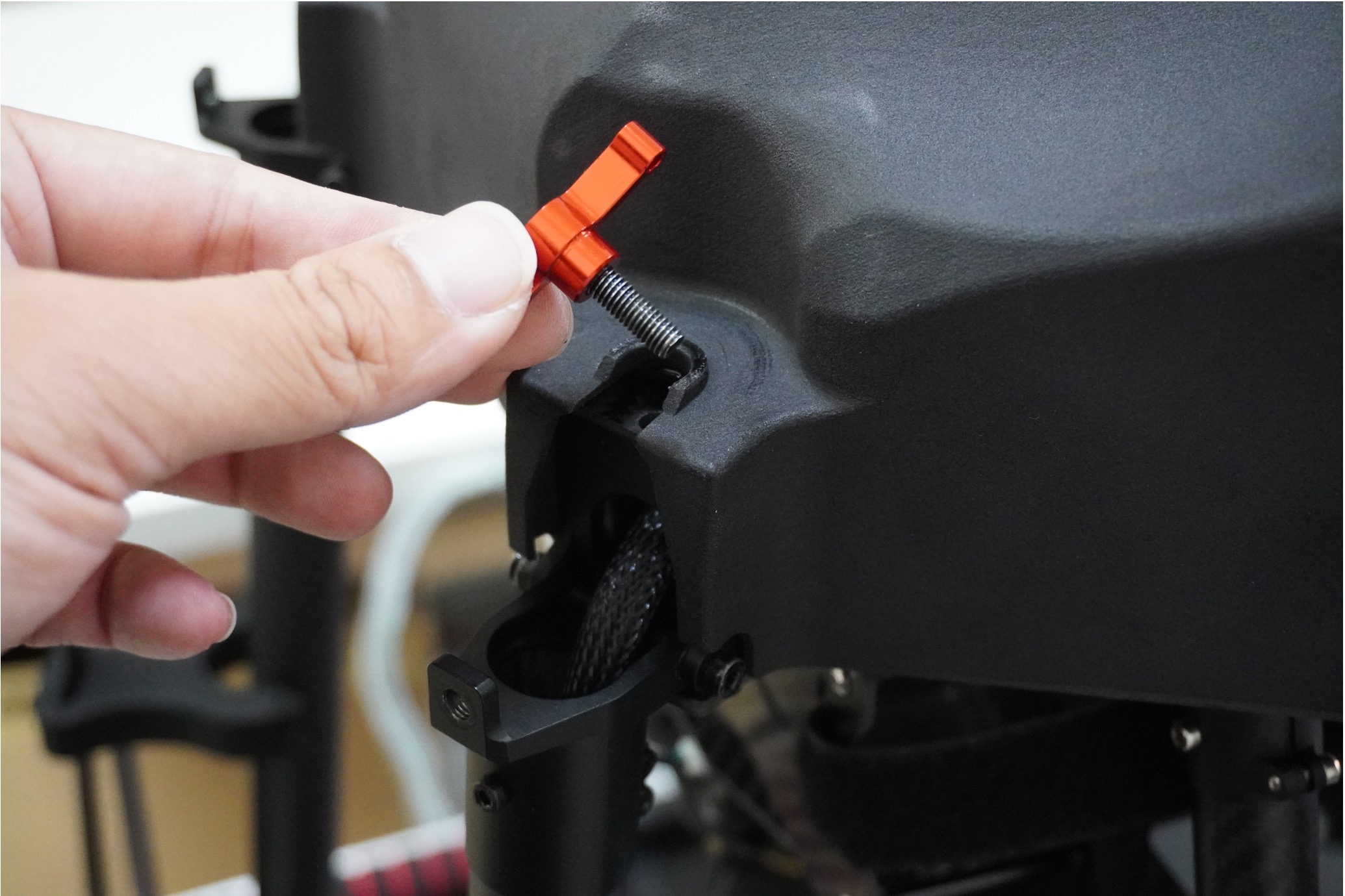 第四步:將機臂鎖件順時針鎖入