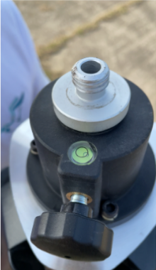 調節三腳架中心柱水平,調整氣泡位於水平儀中心