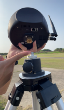 將基站底部螺絲對準中心杆順時針旋轉鎖入