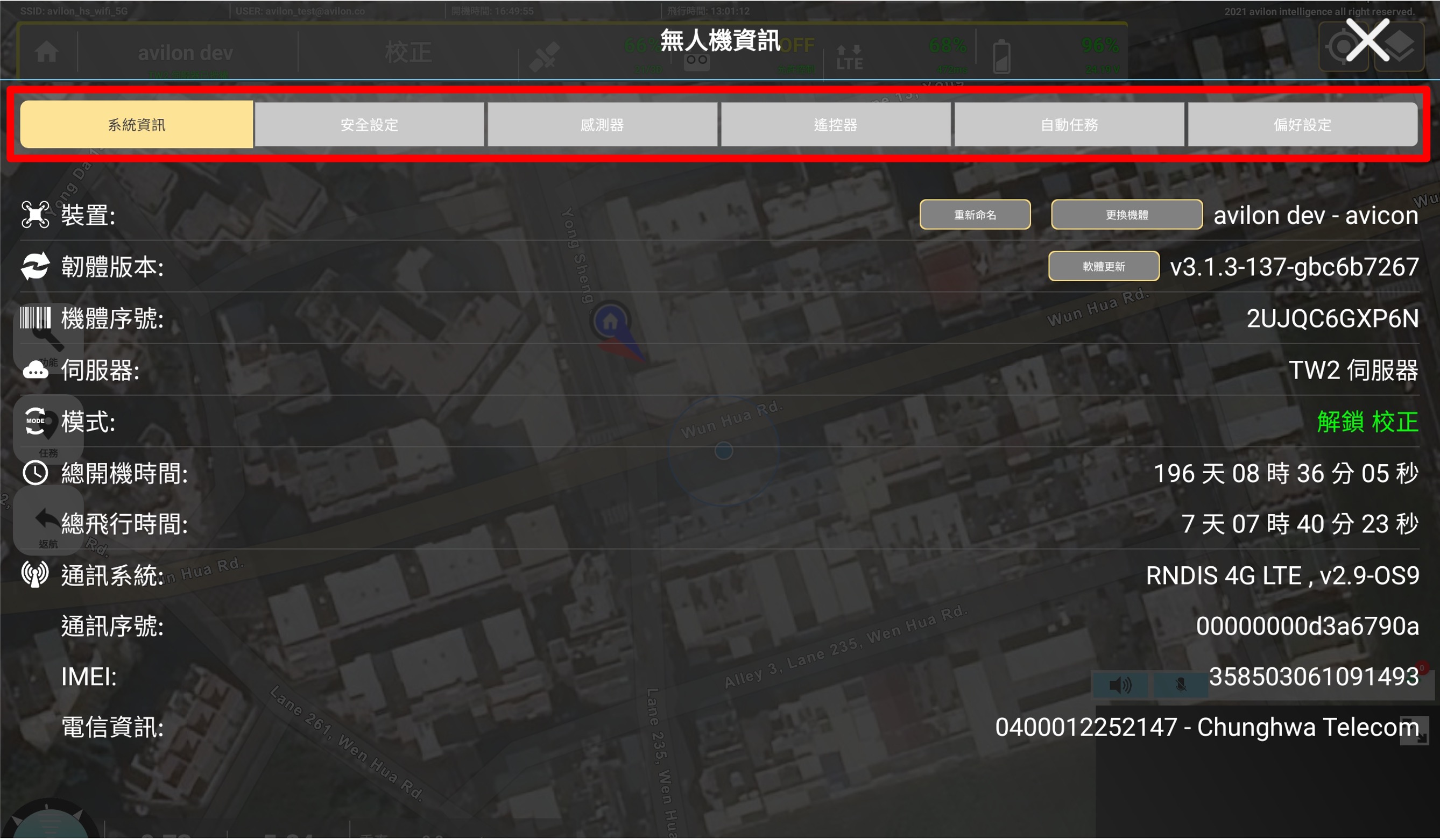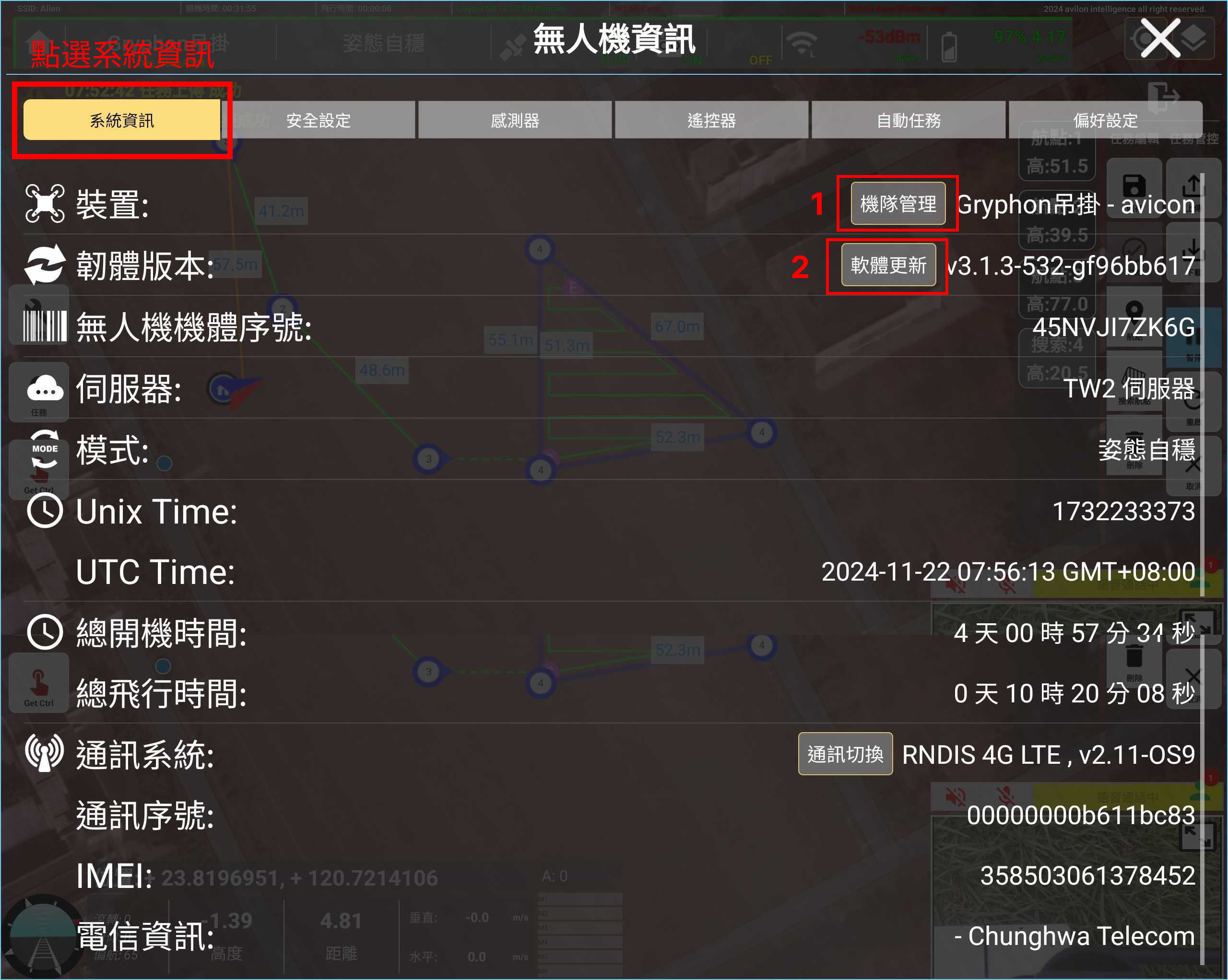 於系統資訊頁面,可以查看無人機系統相關資訊